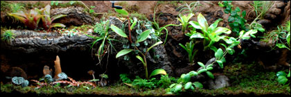 A nice landscape is key to a nice looking vivarium. Try sloping the substrate layer slightly from high to low (lowest at the front, highest toward the back) to achieve an illusion of depth.